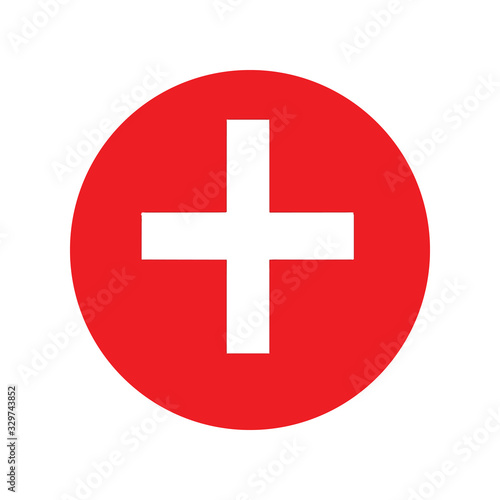 © Ruslam, Obraz premium Switzerland flag button, Vector - Switzerland flag button icon with long shadow.