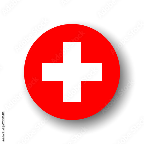 Obraz premium Switzerland flag - flat vector circle icon or badge with dropped shadow.