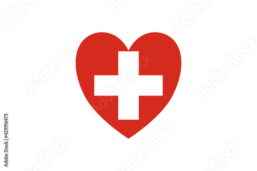© Oleksii, Obraz premium Switzerland flag in the heart shape. Isolated on a white background.