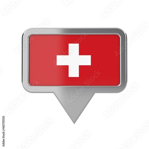 Obraz premium Switzerland flag location marker icon. 3D Rendering