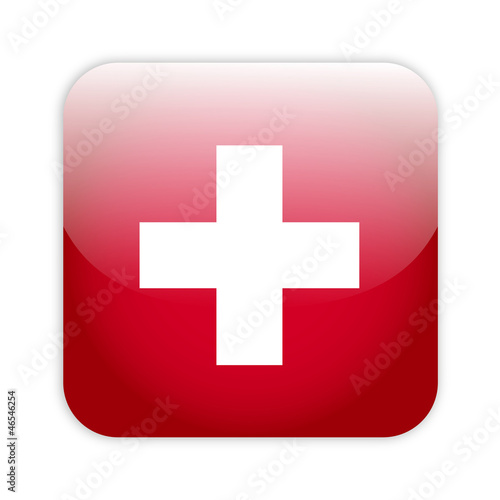 © pockygallery11, Obraz premium Switzerland flag on button