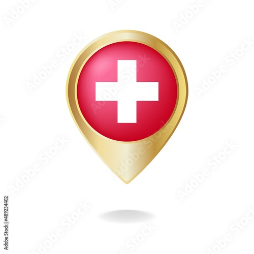 Obraz premium Switzerland flag on golden pointer map, Vector illustration eps.10