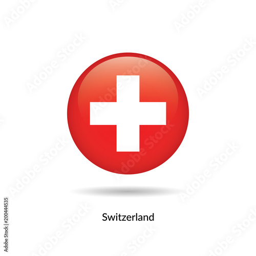 © Idris, Obraz premium Switzerland flag - round glossy button. Vector Illustration.