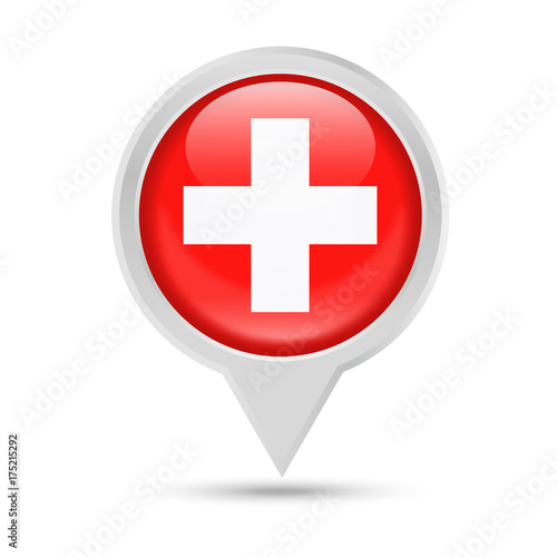 © Porcupen, Fototapeta premium Switzerland Flag Round Pin Vector Icon