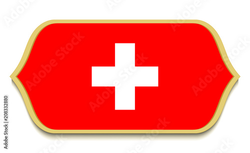 Obraz premium Switzerland. Flat national flag icon button. Swiss symbol isolated on white background.