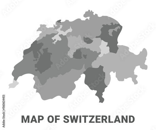 © Jayartiez, Obraz premium Switzerland Greyscale political map simple flat illustration