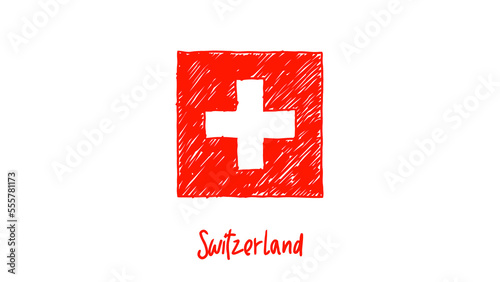 Obraz premium Switzerland National Country Flag Pencil Color Sketch Illustration