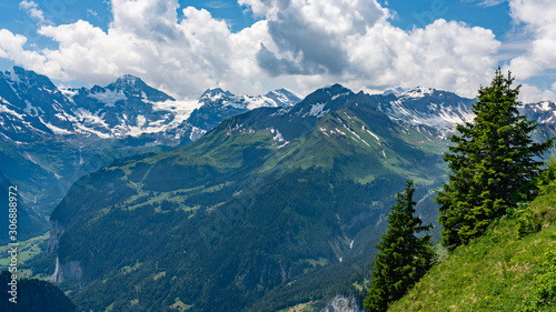 © AlehAlisevich, Fototapeta premium Switzerland, Panoramic view on green Alps from Schynige Platte