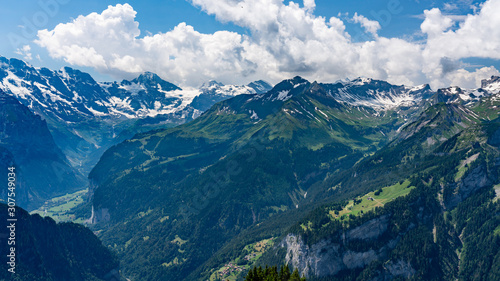 © AlehAlisevich, Fototapeta premium Switzerland, Panoramic view on green Alps from Schynige Platte