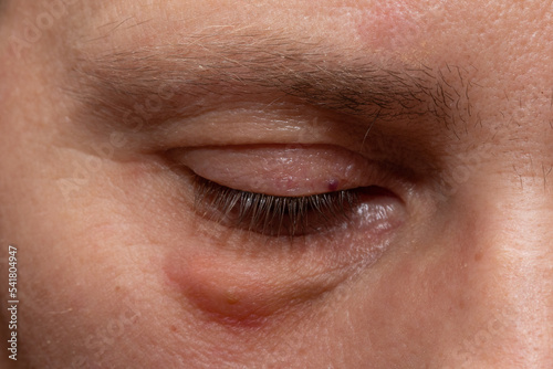 Fototapeta premium Swollen eyes from tiredness and irritation