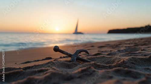 © jhx studio, Fototapeta premium Sword in the sand at the beach during sunset