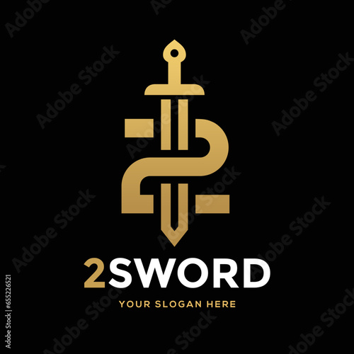 Obraz premium Sword letter or number 2 vector logo template. This design use gold. Suitable for business or battle