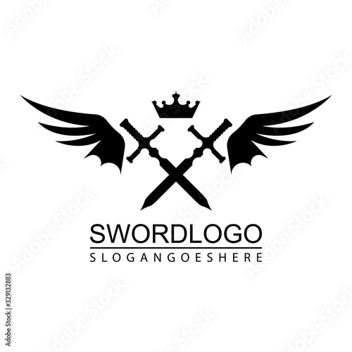 Obraz premium Sword Winged Logo Vector Template Design