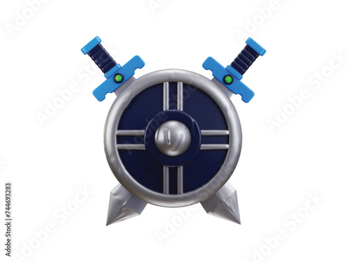 Obraz premium Sword with metal shield icon 3d rendering vector illustration