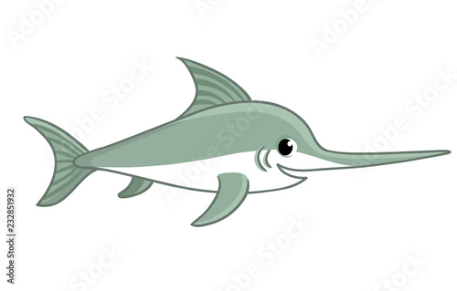 © svaga, Obraz premium Swordfish on a white background. Vector illustration with a fish