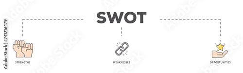 Fototapeta premium SWOT icons process flow web banner illustration of value, goal, break chain,...