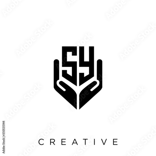 Fototapeta premium sy shield hand logo design vector icon