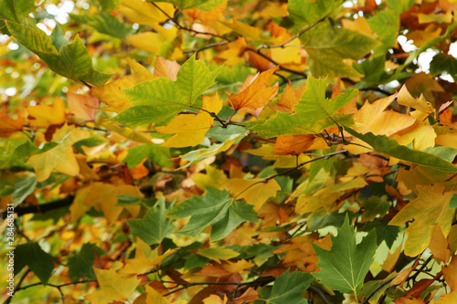 © Vitalfoto, Fototapeta premium Sycamore leaves in autumn