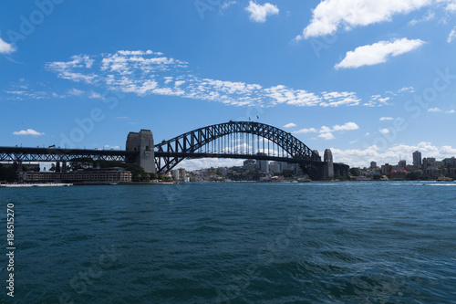 Fototapeta premium Sydney-Bridge im Hafen von Sydney mit Blick von einem Taxi-Boot