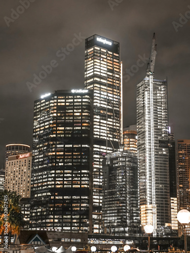 © DoThi, Obraz premium Sydney CBD Rainy Night Skyline with Illuminated High-Rise Buildings