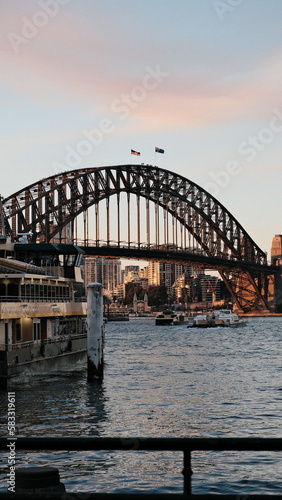 © Eolande, Naklejka premium Sydney city harbour bridge at sunset