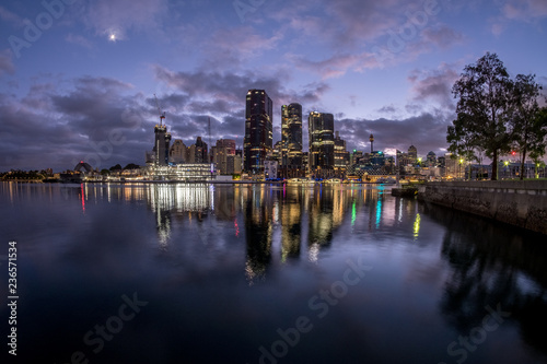 © Tim, Fototapeta premium Sydney City under a crescent moon and dawn clouds