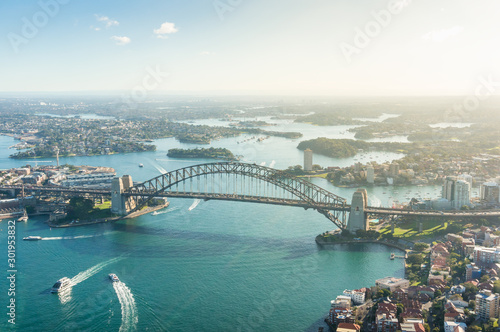 Fototapeta premium Sydney harbour aerial landscape cityscape with Sydney Harbour bridge