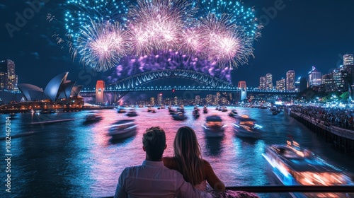 © dominic, Fototapeta premium Sydney Harbour Bridge Fireworks Night View Couple