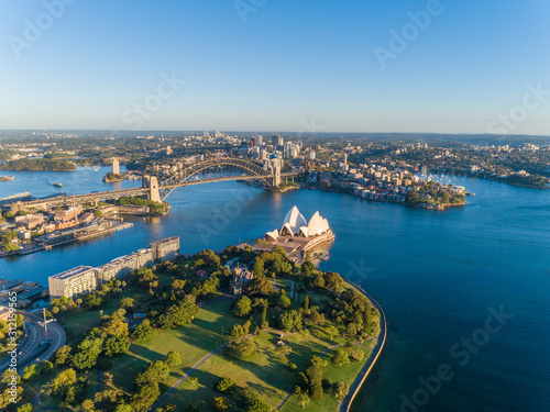 © jamenpercy, Naklejka premium Sydney Harbour cityscape from air