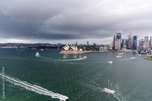 © Susanne Warlich, Naklejka premium Sydney harbour during a thunderstorm and dark moody sky