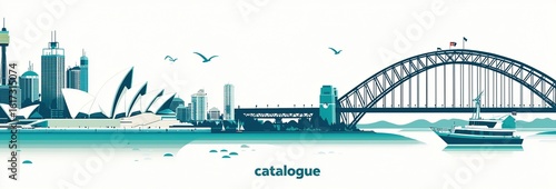 Obraz premium Sydney Skyline Art: Iconic Opera House & Harbour Bridge in Teal Palette