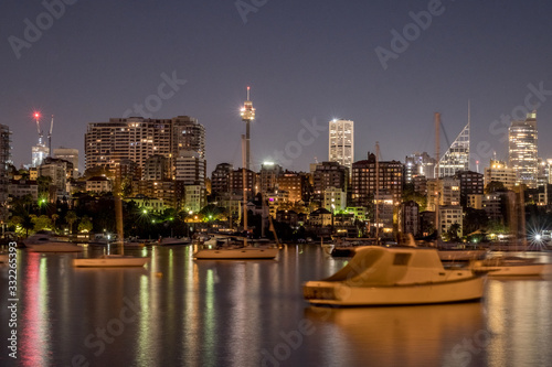 © Tim, Fototapeta premium sydney skyline at night with yachts