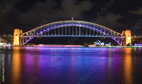 © Taras Vyshnya, Obraz premium SydneyVivid Bridge Side