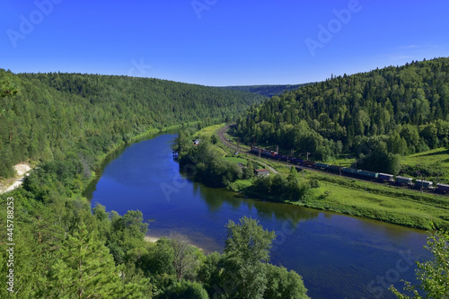 © FMVideo, Fototapeta premium Sylva River and Trans-Siberian Railway