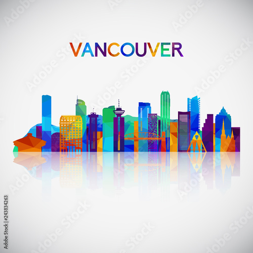 © greens87, Naklejka premium Sylwetka panoramę Vancouver w kolorowym stylu geometrycznym. Symbol Twojego projektu. Ilustracji wektorowych.