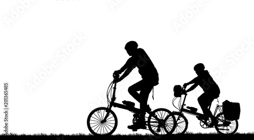 © rathchapon, Fototapeta premium Sylwetka przyjaciela grupy i rower relaksujący na białym tle