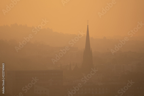 © luchschenF, Fototapeta premium sylwetka wiejskiego kościoła wczesnym rankiem