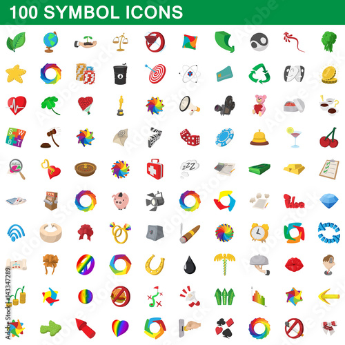Fototapeta premium 100 symbol icons set, cartoon style