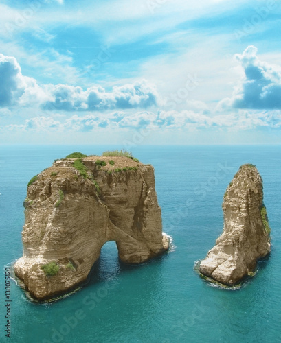 © dimmitrius, Obraz premium Symbol Libanu, skały gołębi w Bejrucie