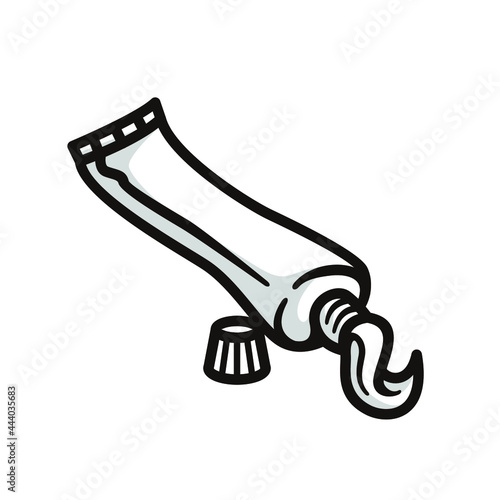 © veeza_design, Fototapeta premium symbol of toothpaste dispensing its contents, in black line art style and shadow details.