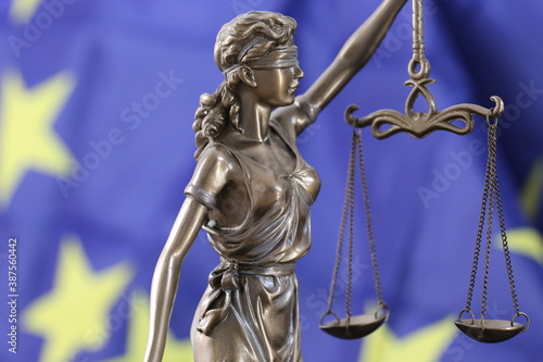 © U. J. Alexander, Fototapeta premium Symbolbild: Justitia vor einer Europa-Flagge