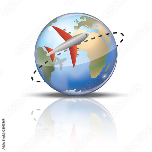 Fototapeta premium Symbole tourisme autour du monde globe terrestre
