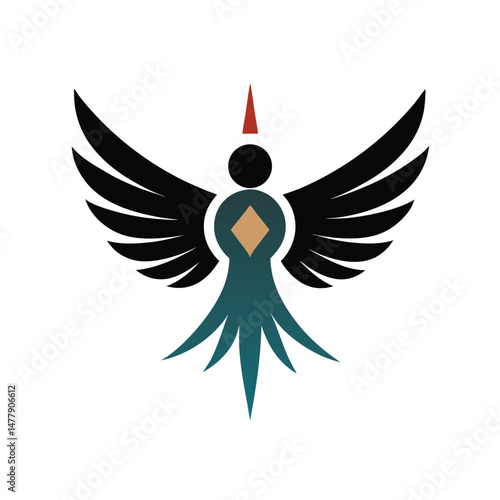 © Rakibul, Obraz premium Symbolic bird icon with geometric design and stylized wings isolated on white background
