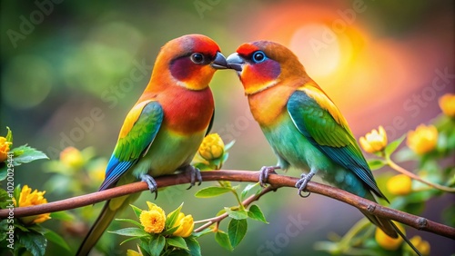 Fototapeta premium Symbolic Love Birds Representing Romance, Affection, and Bonding in Nature's...