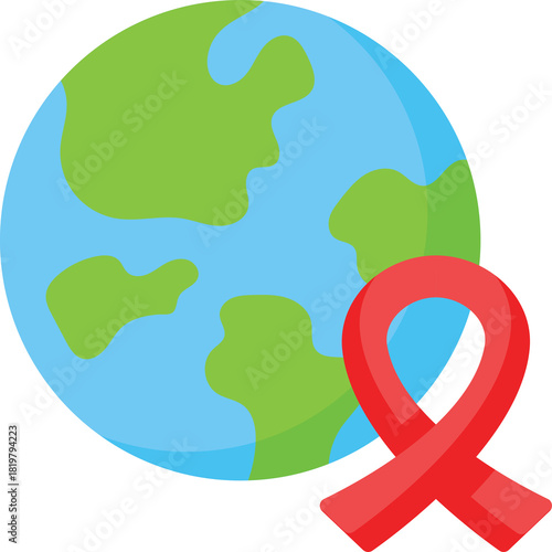 Obraz premium Symbolic Red Ribbon Wrapped Around A Stylized Earth Globe Representing Global Health Awareness And Support