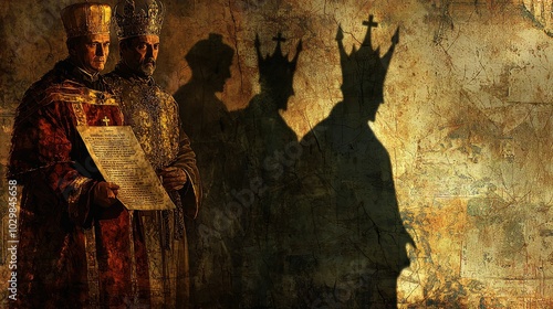 © Kitta Studio, Naklejka premium Symbolic Representation of King Philip IV and Pope Clement