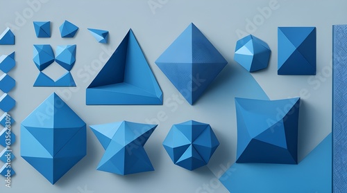 Fototapeta premium Symmetric Serenity: Geometric Elements on Monotone Blue Canvas