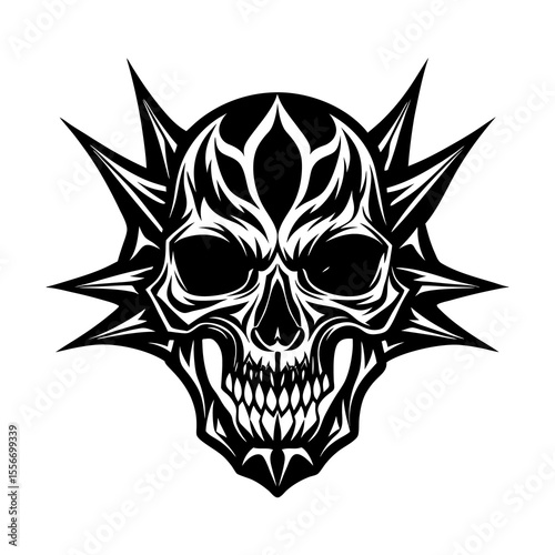 © Roy Dream Designs, Obraz premium Symmetric Skull Vector Silhouette on White Background