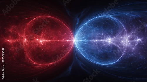 Fototapeta premium Symmetrical abstract composition featuring blue and red energy waves forming...