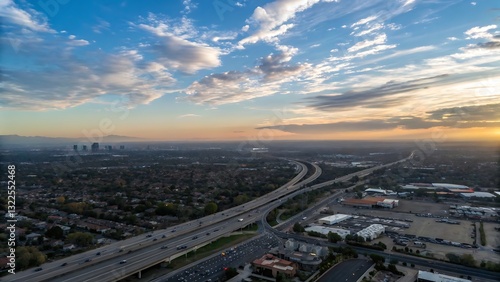 © Imdad, Fototapeta premium Symmetrical aerial view of sprawling highway loops amidst patches of green landscape."